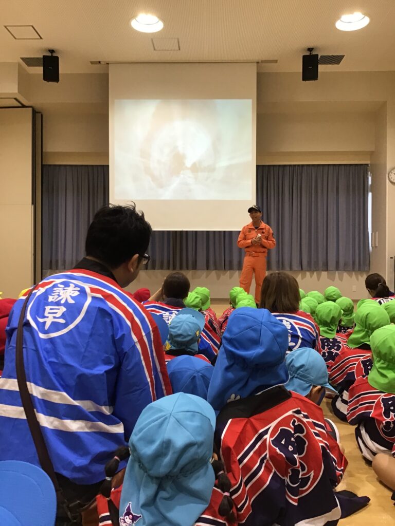 諫早消防署で行われた、ちびっ子防火大会に年長さんが行ってきました♪
