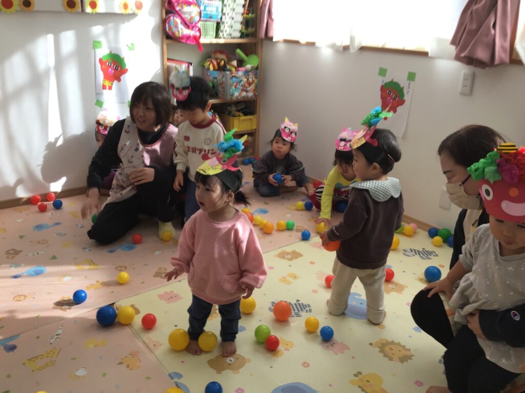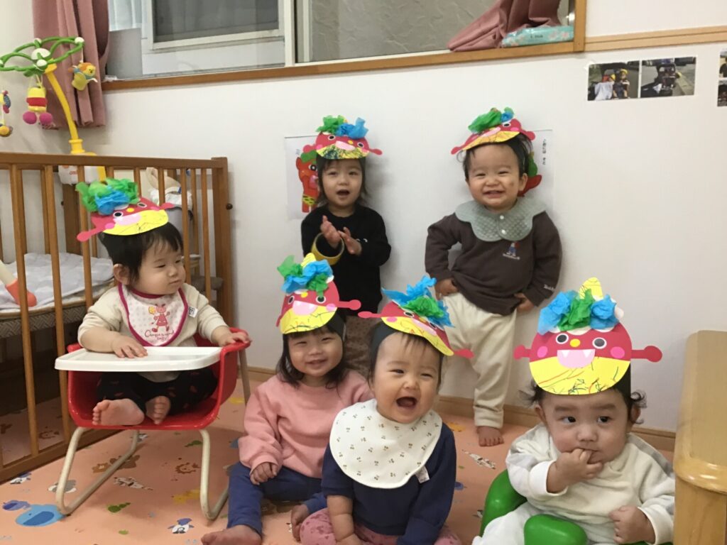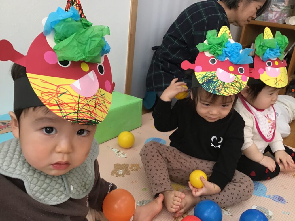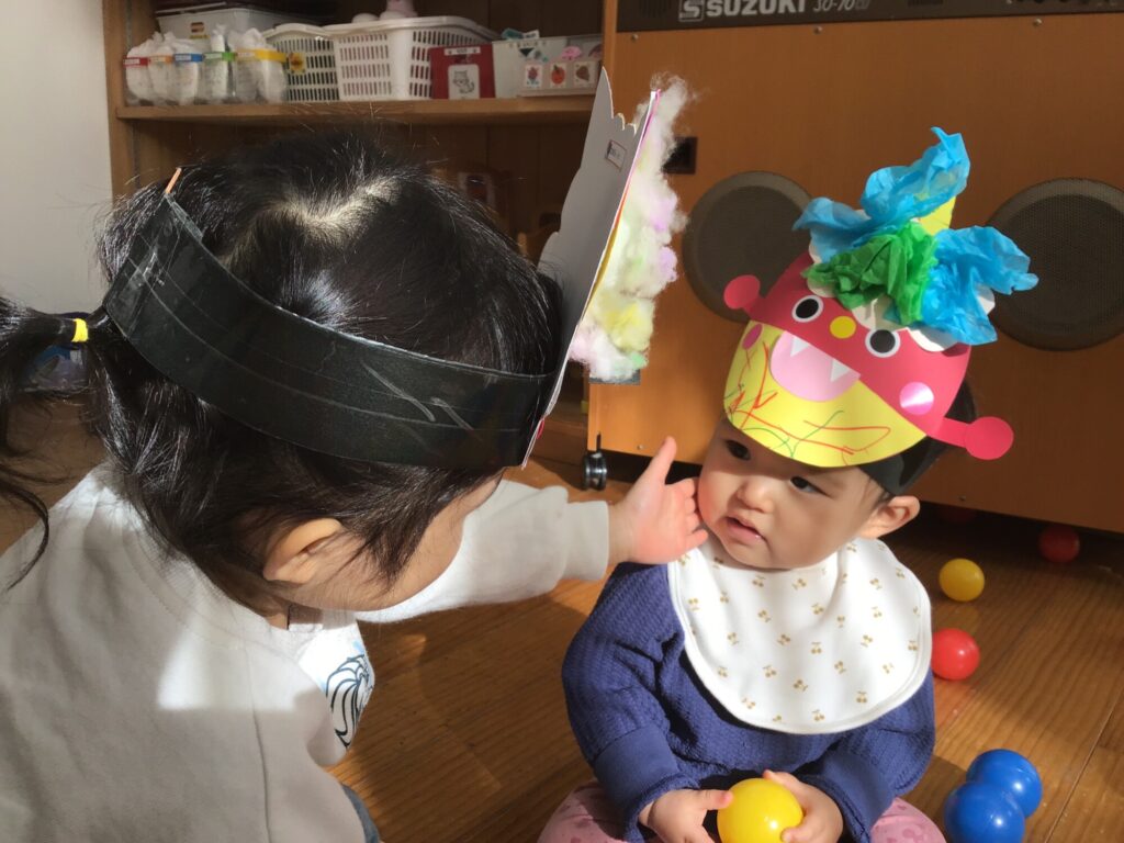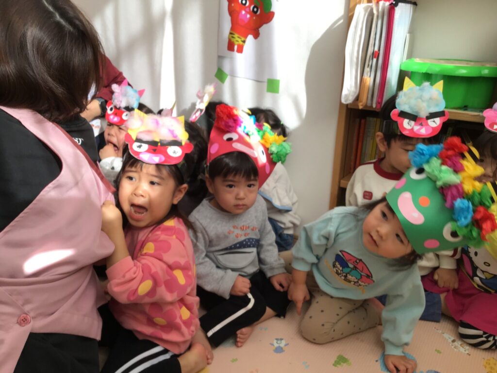 こどもたちは、前日から「鬼をやっつけてやる!」「保育園休みたいー」など、さまざまな心境の中、勇敢に鬼さんに立ち向かっておりました☆