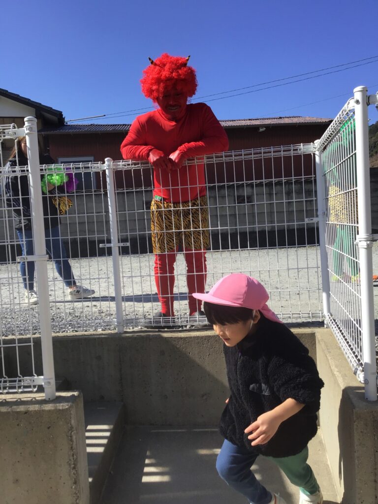 地域の方が鬼の格好をして、保育園に襲来!