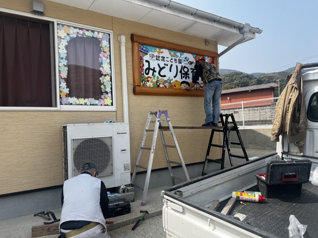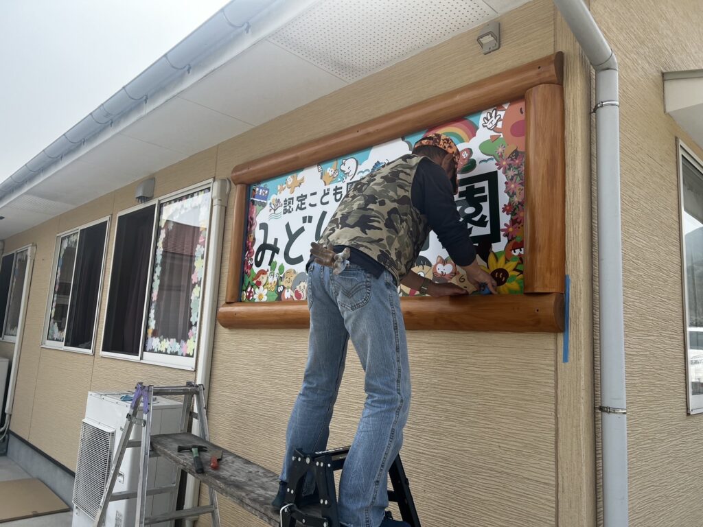 新しく変えた「看板」には、大草の自然豊かな風景から、賑やかな子どもたちの様子など表しております。